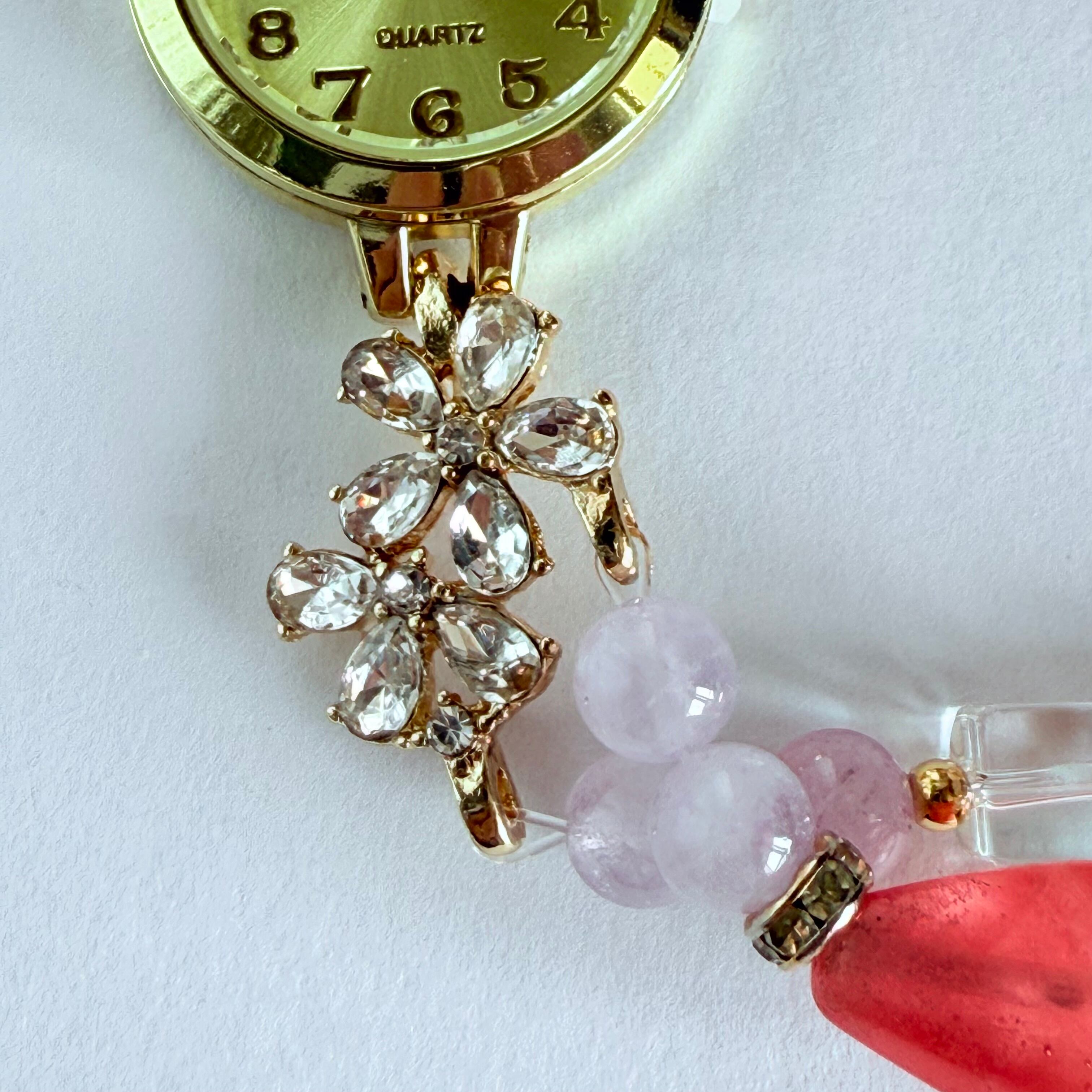 手元を華やかに彩る、ハンドメイドのブレスレットウォッチです。