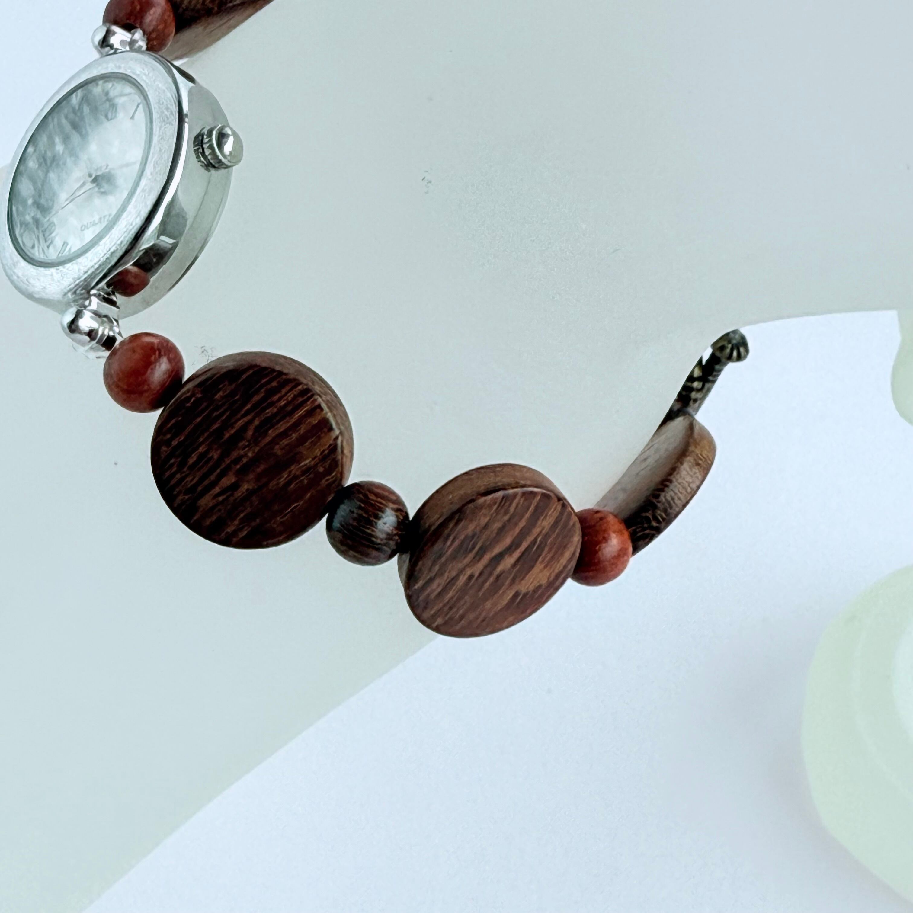 木のぬくもりを手元に纏う、珍しいウッド素材のブレスレットウォッチです。