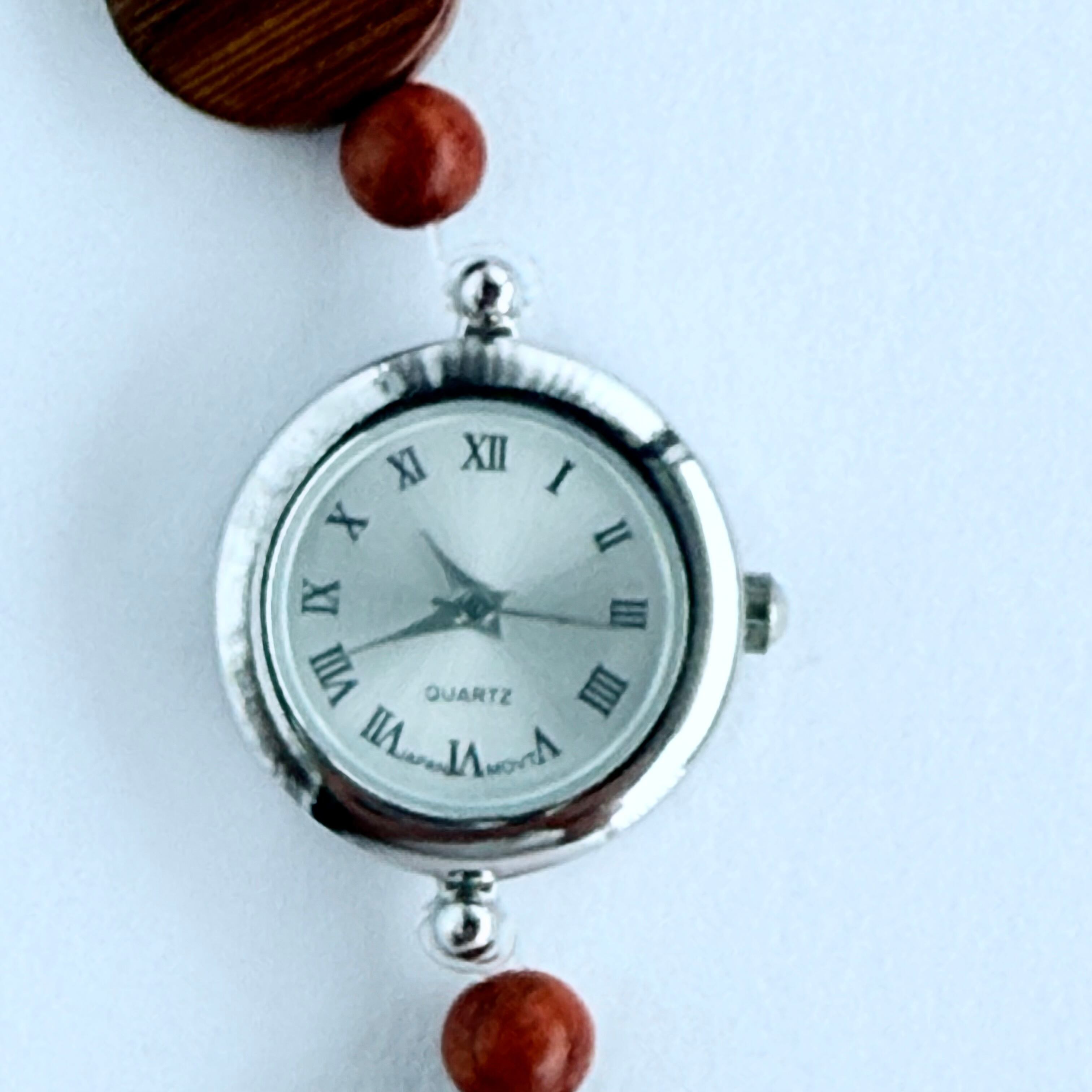 天然木、金属パーツ、クォーツ時計