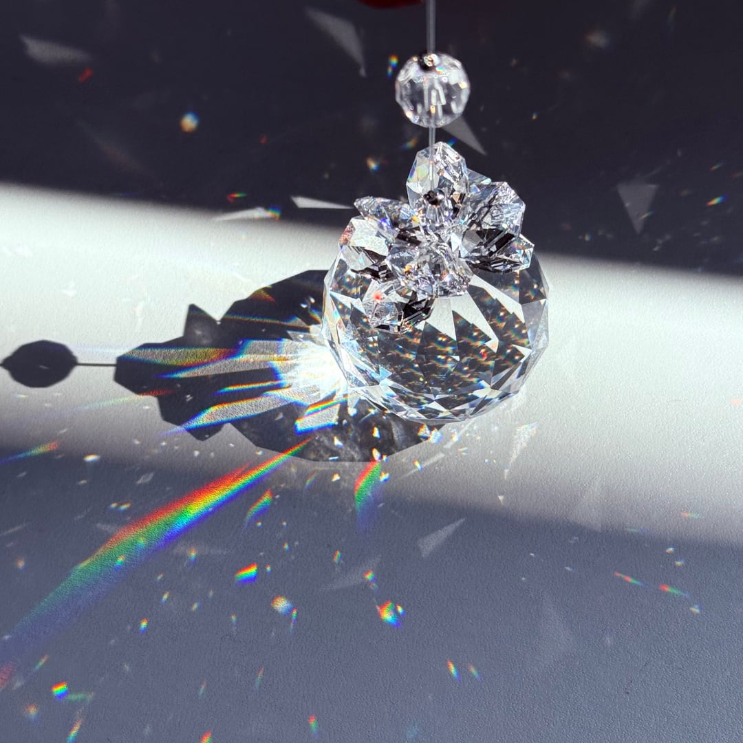 太陽の光を受けるとクリスタルがきらりと輝き、お部屋に小さな虹の光を広げてくれます。