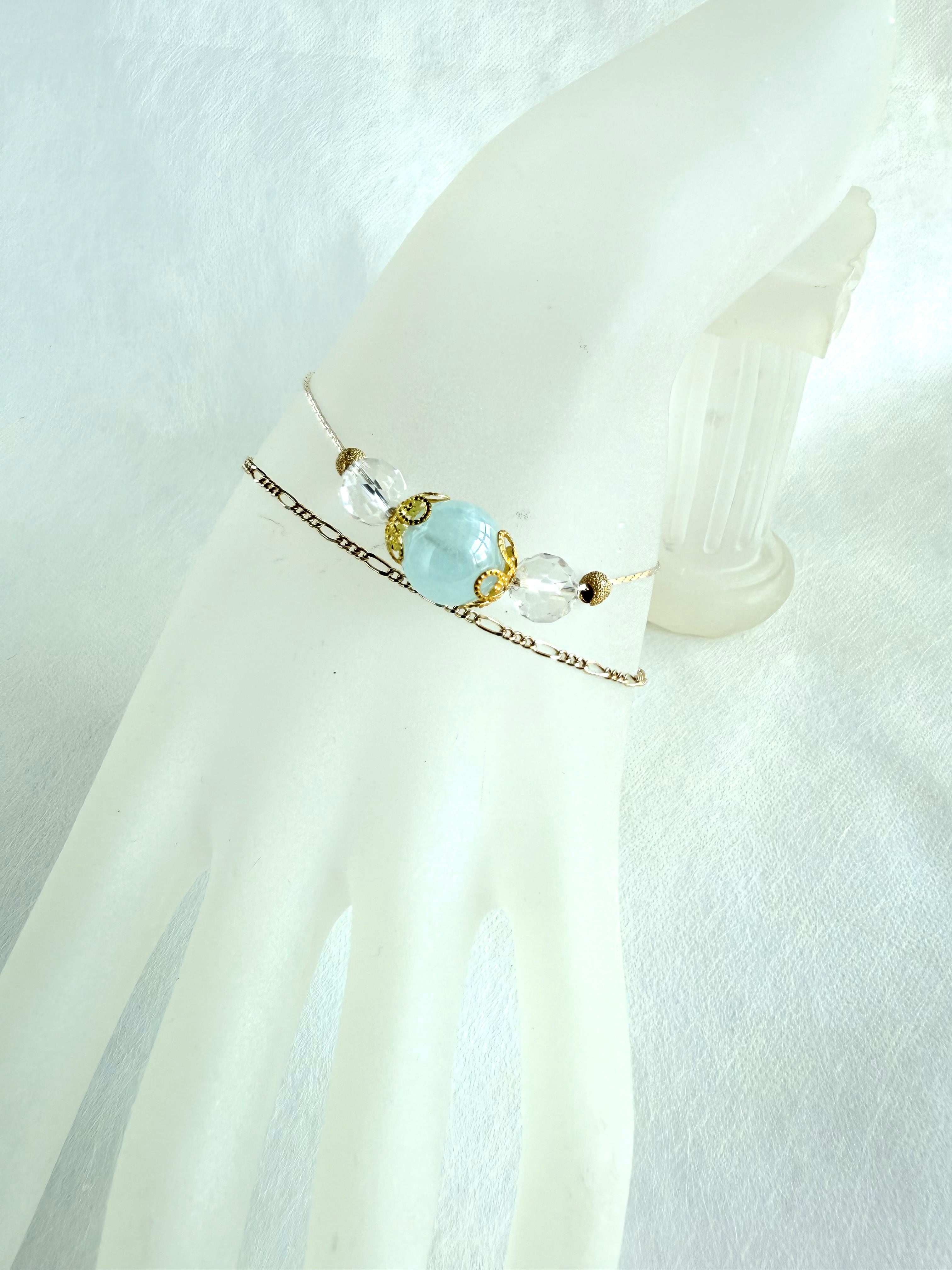澄み渡る海のようなアクアマリンをクリスタルで優雅に挟んだ2連ブレスレットです。