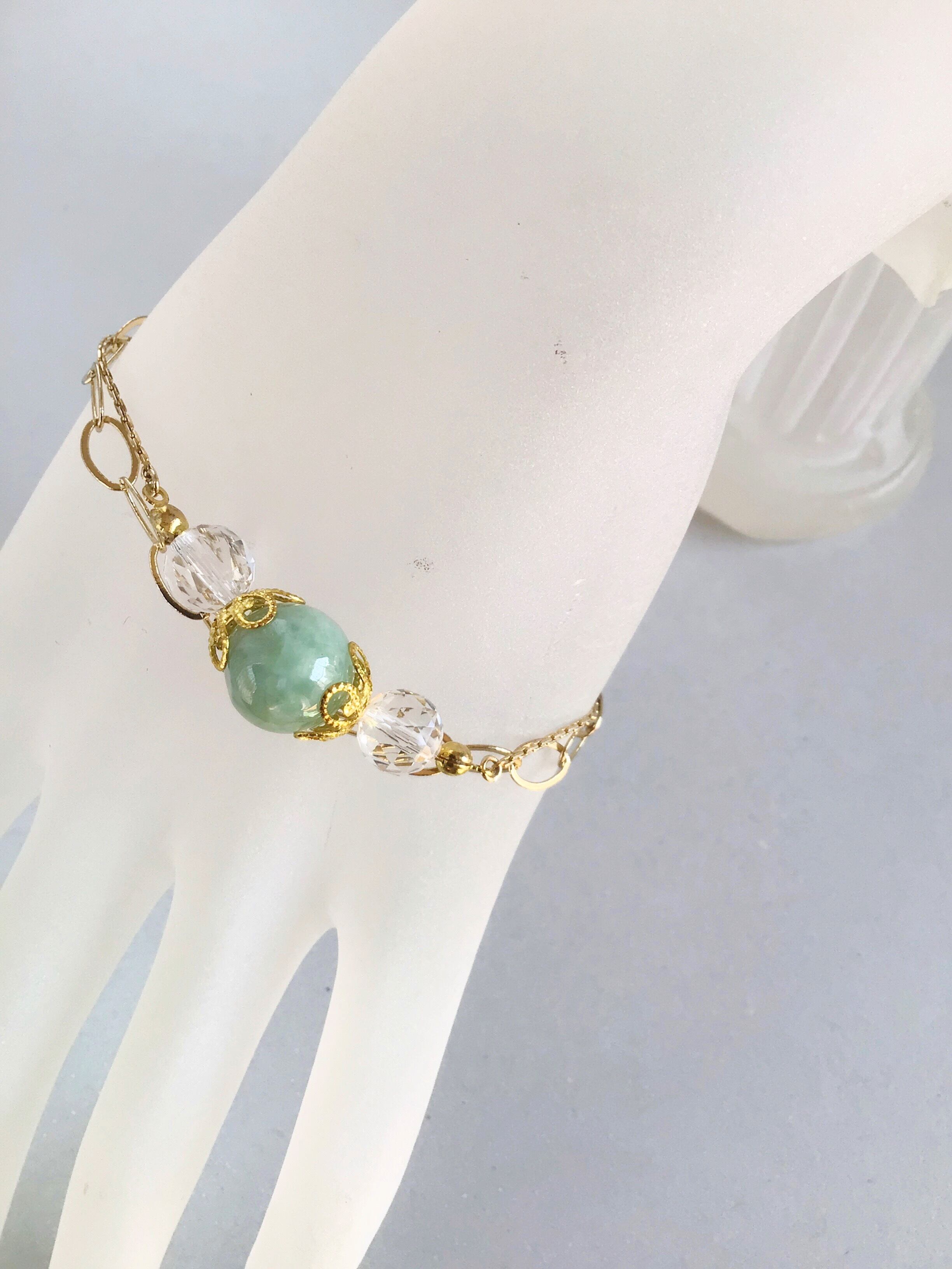 気品あふれる大粒の翡翠を主役に、両端をクリスタルで挟み込んだエレガントな2連ブレスレットです。