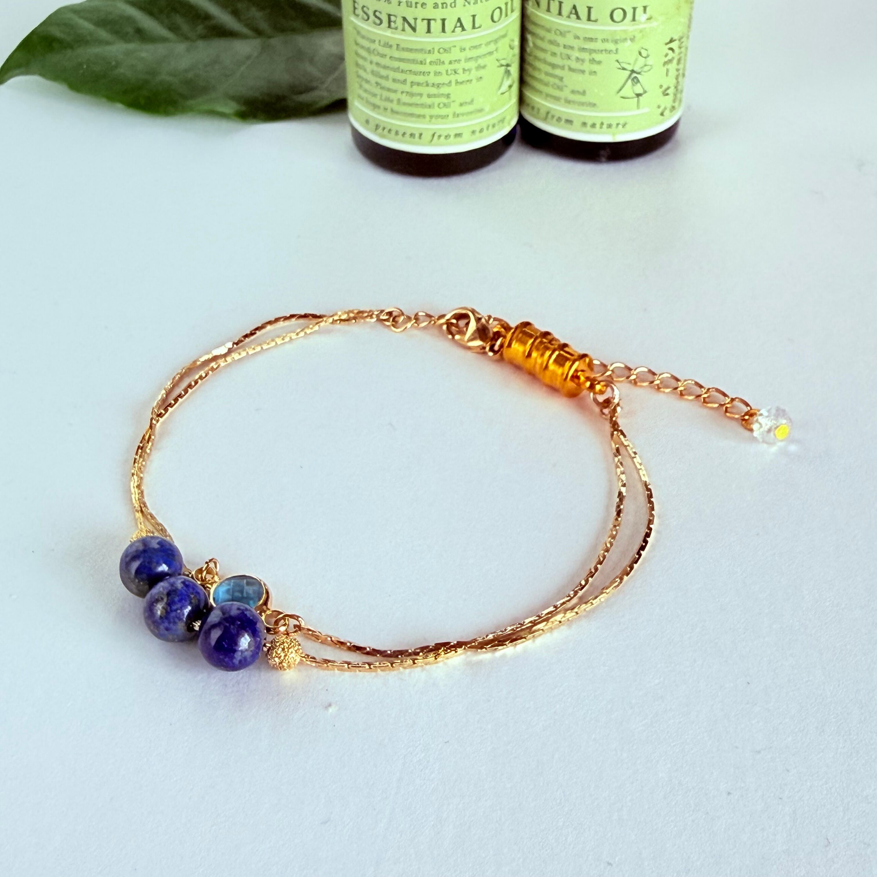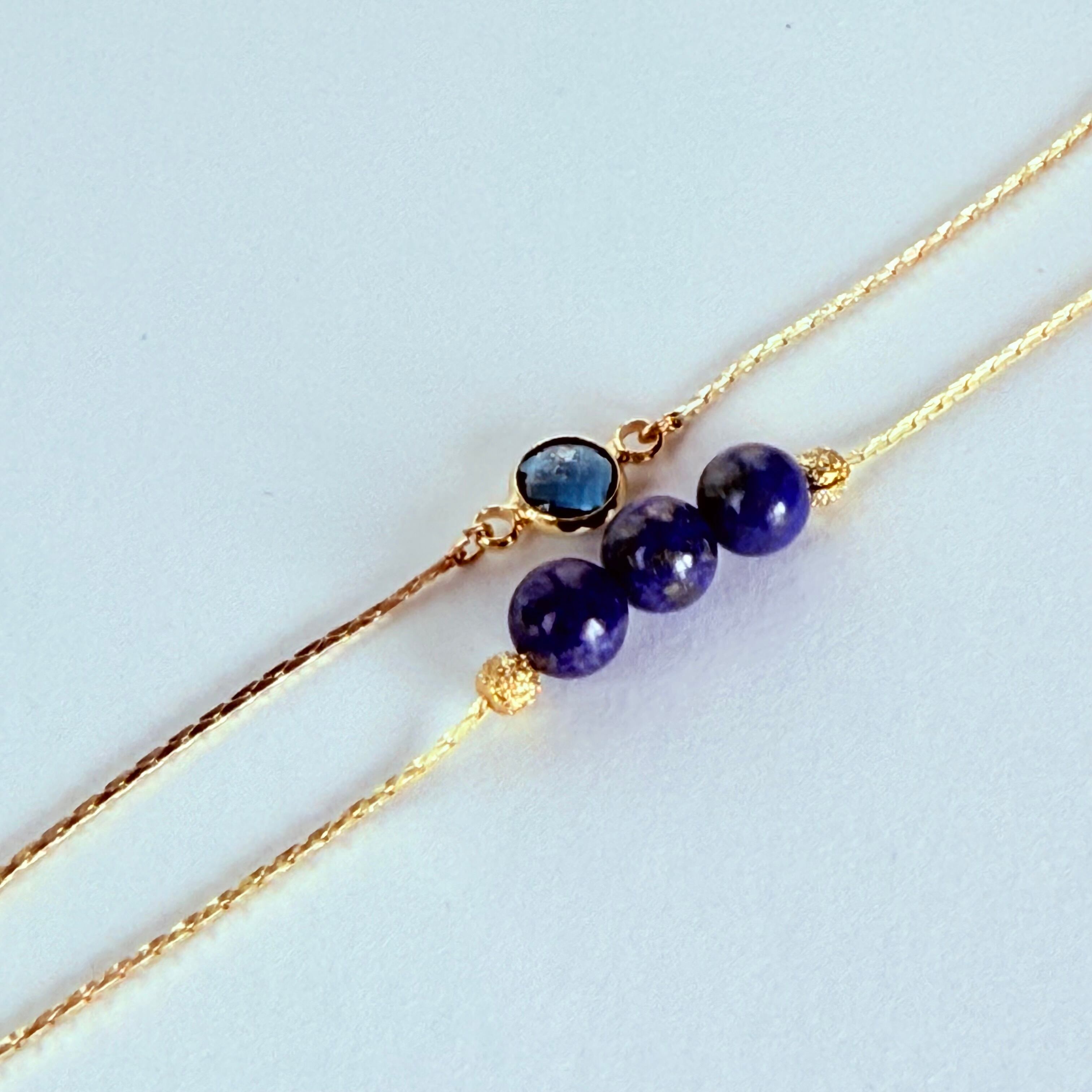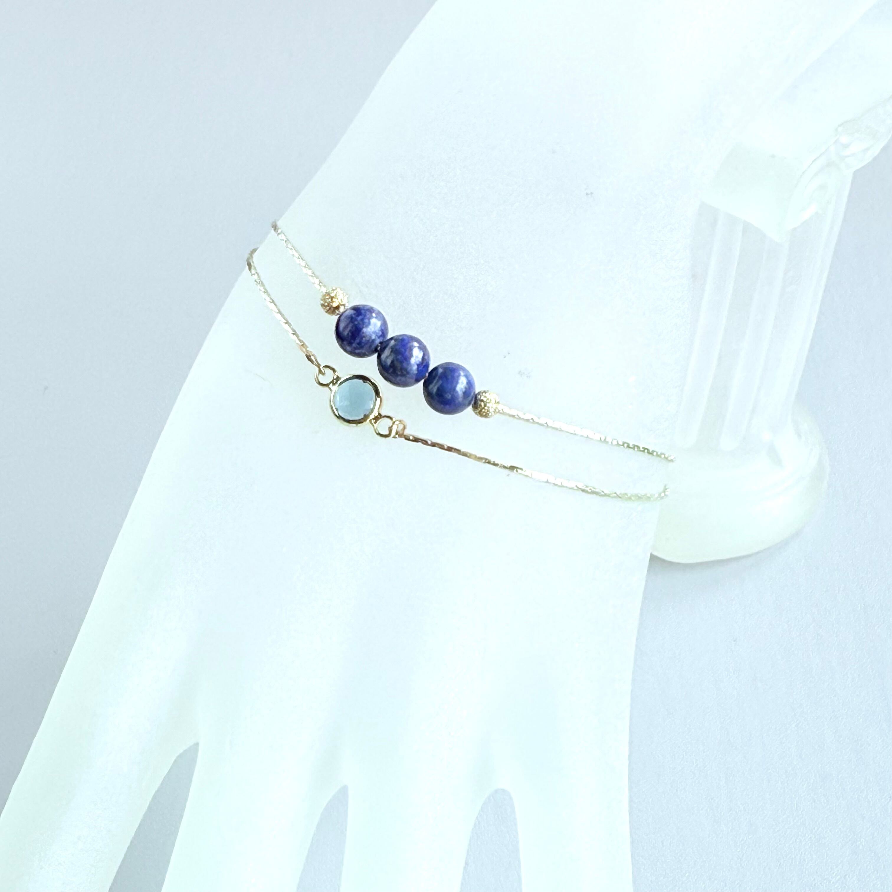 繊細なゴールドチェーンと深みのあるラピスラズリが織りなす上品な2連ブレスレットです。