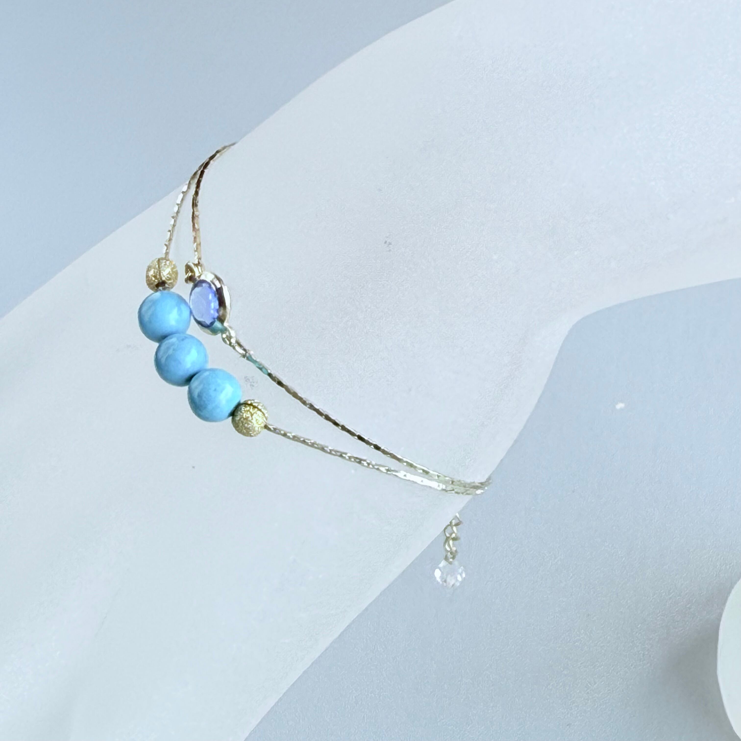 繊細なゴールドチェーンに、鮮やかなターコイズが映える2連ブレスレットです。