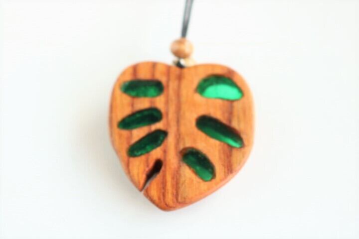葉の緑色の部分は、レジンを流し込み色を付けております。