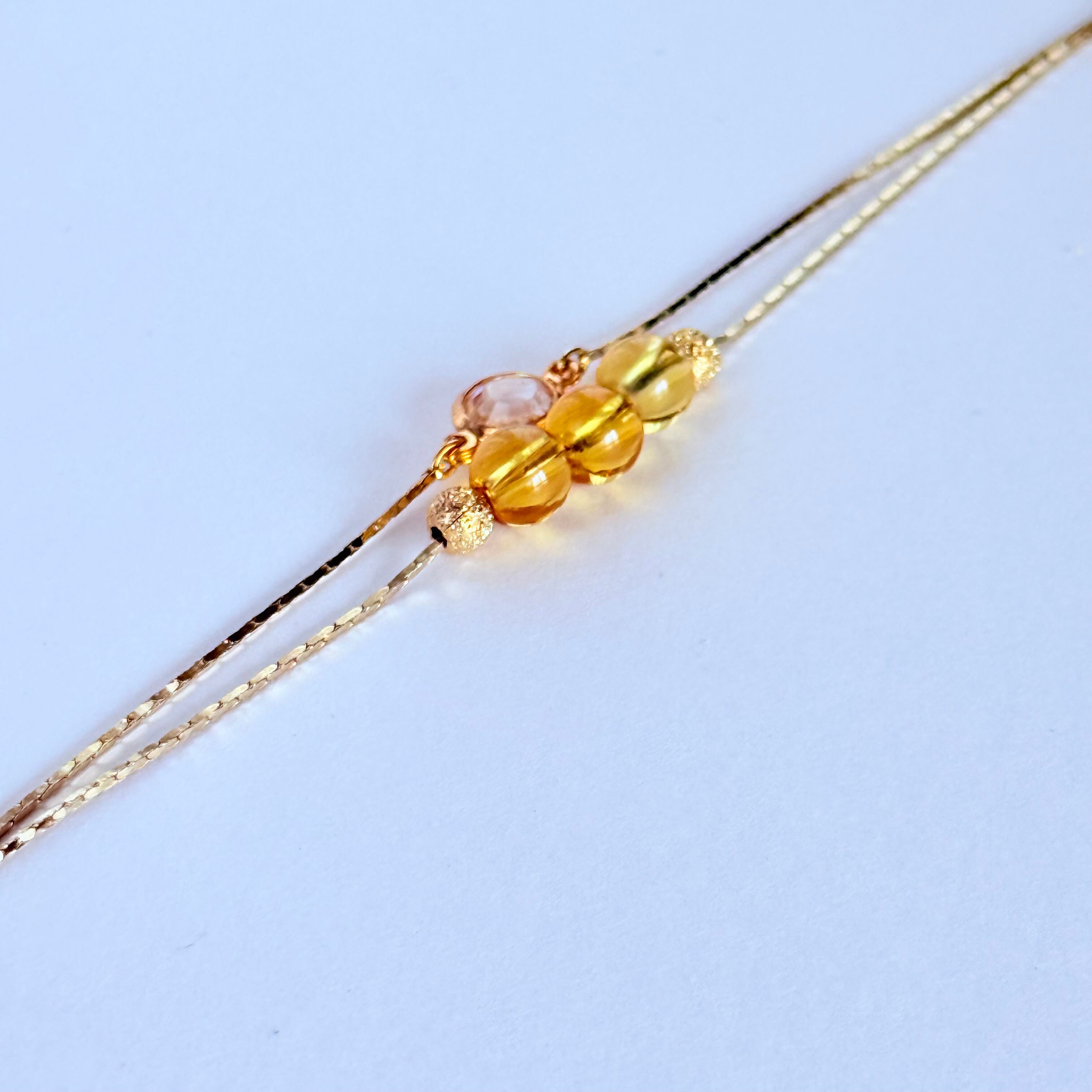 繊細なゴールドチェーンとシトリンが輝く、エレガントな2連ブレスレットです。