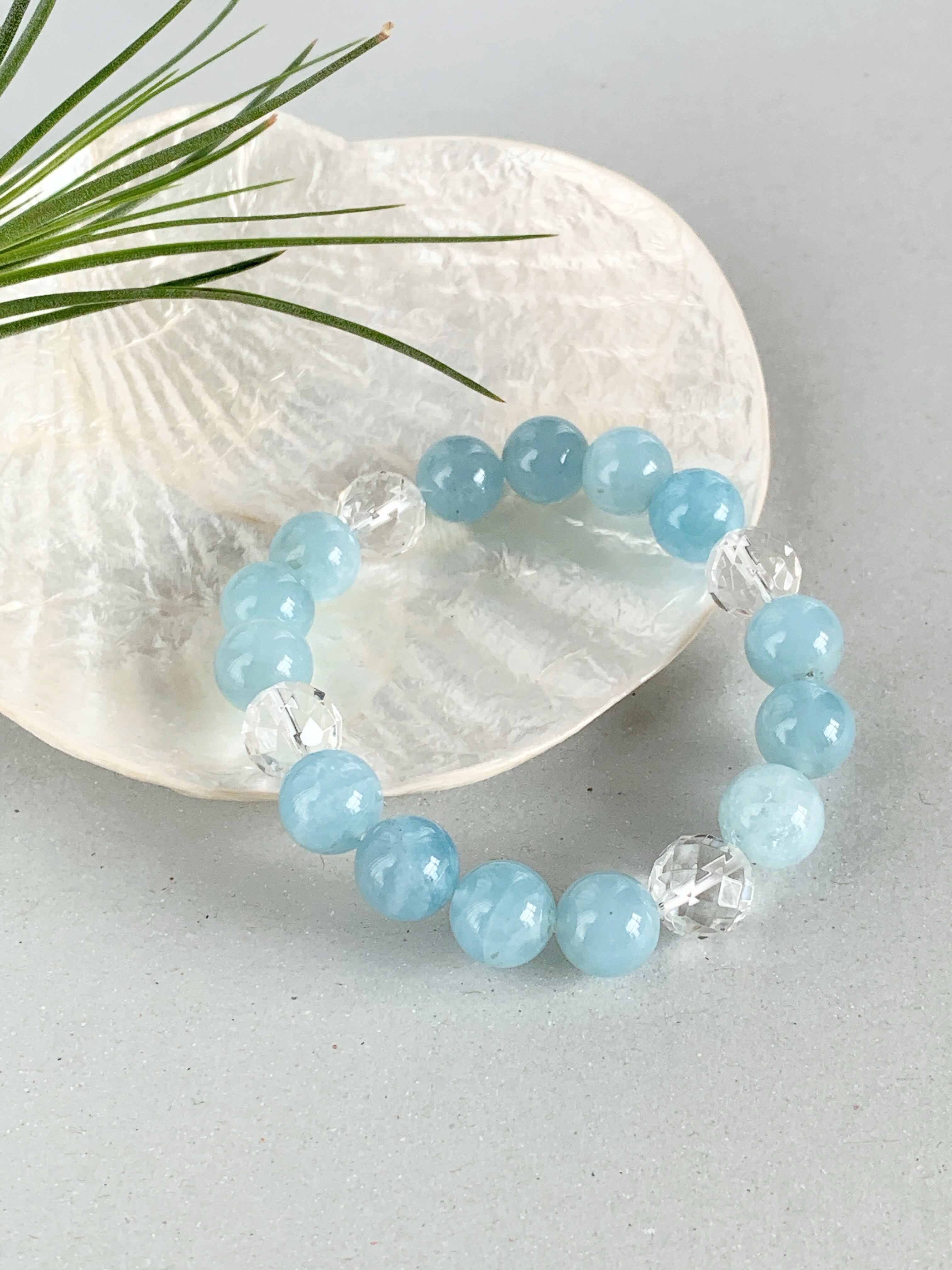 アクアマリンと清らかな水晶を組み合わせた上品で洗練されたブレスレットです。