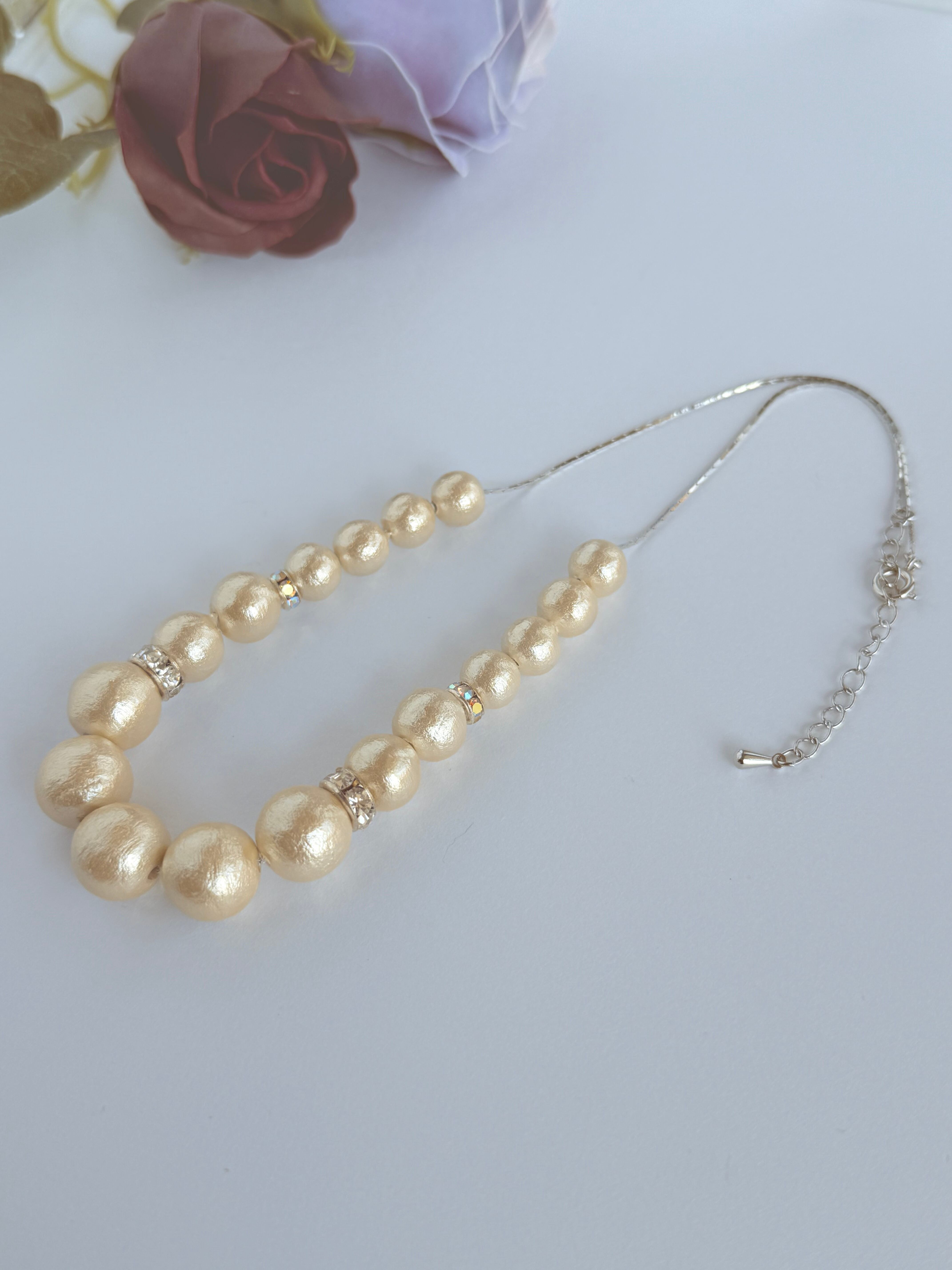 シルバーチェーンを使ったコットンパールのネックレスです。