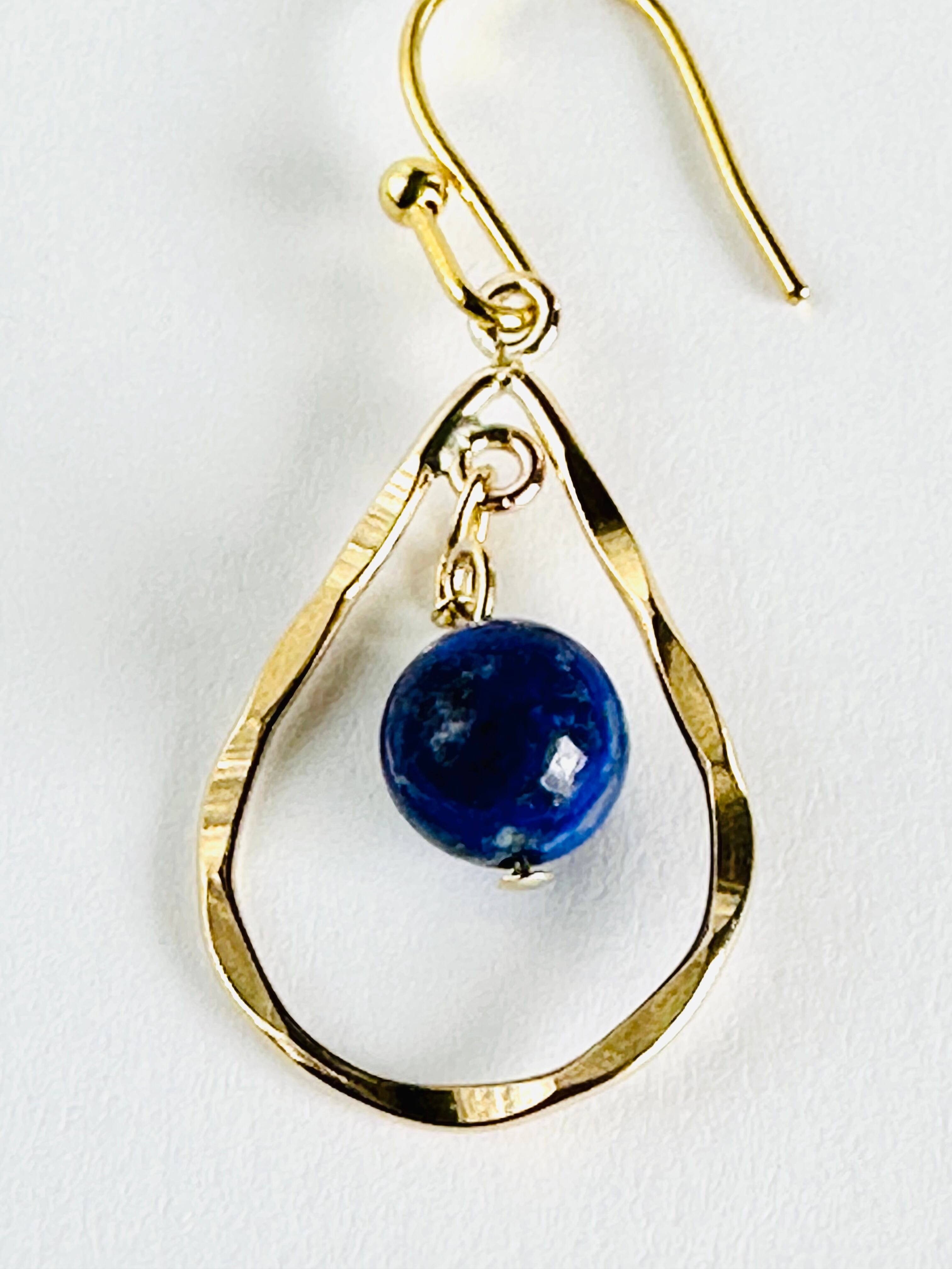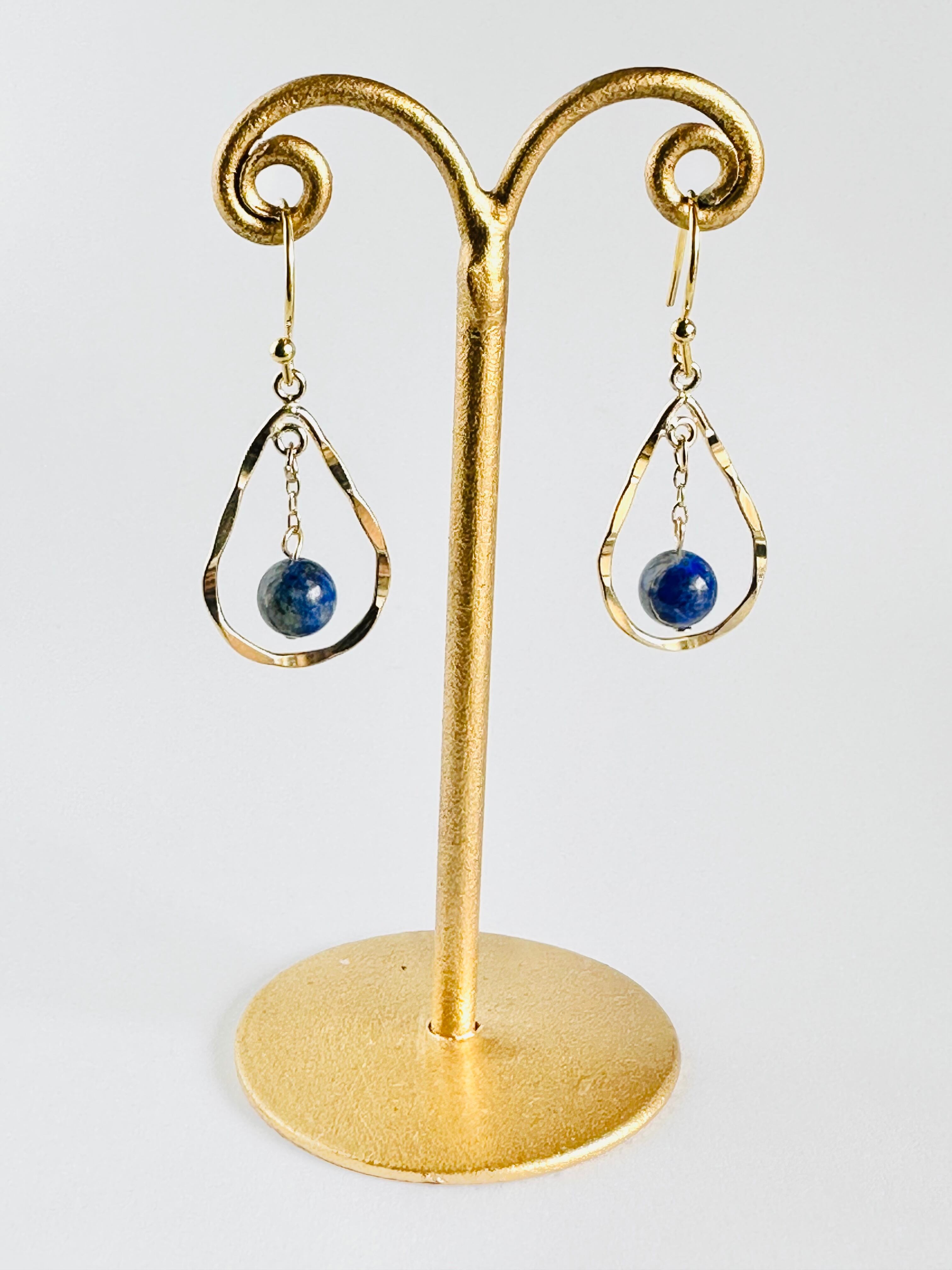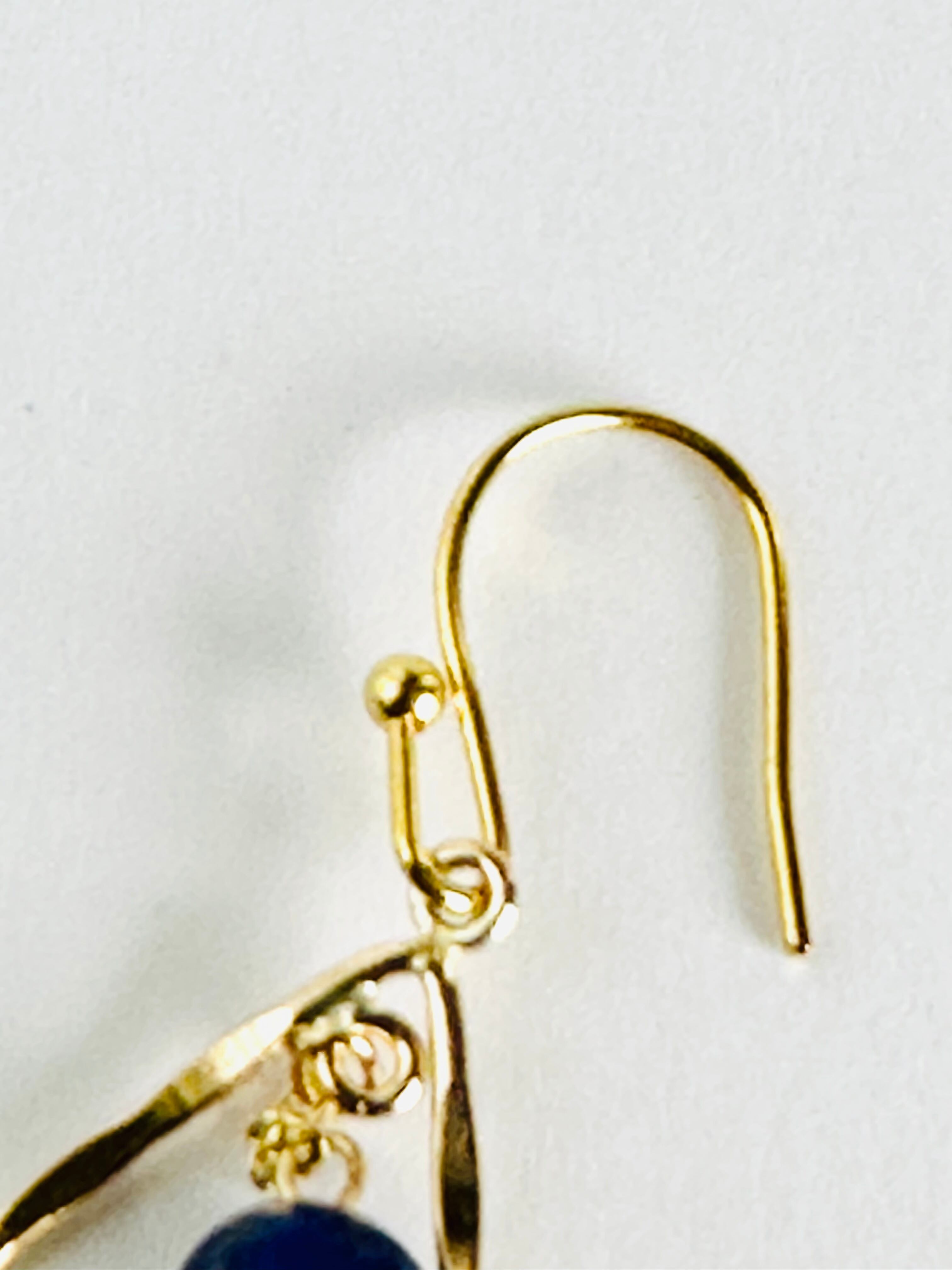 深く美しい夜空のようなラピスラズリが、繊細なチェーンの先で優雅に揺れるピアスです。