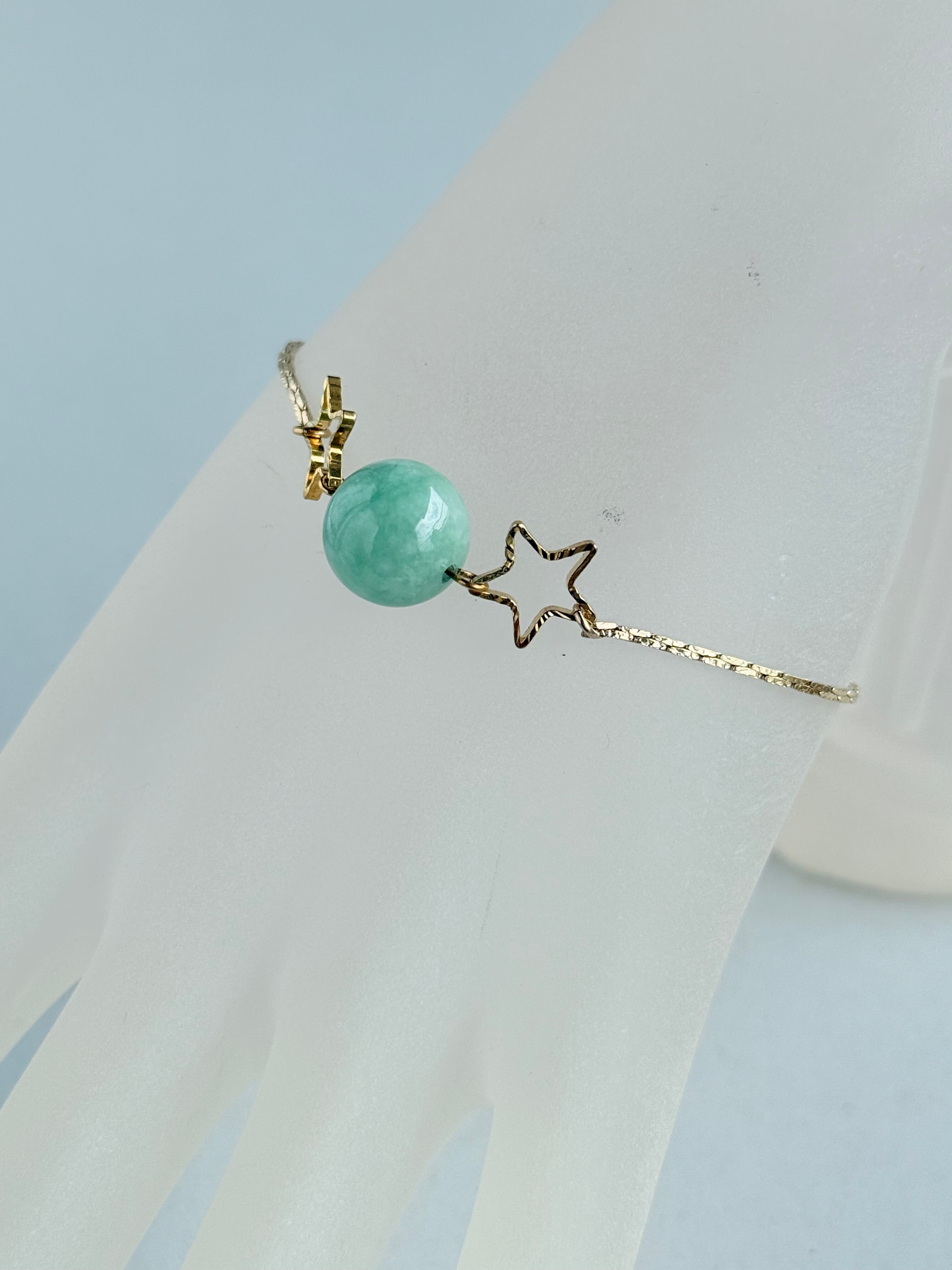 翡翠の持つ落ち着いた魅力と星の輝きが融合した、特別なブレスレットです。
